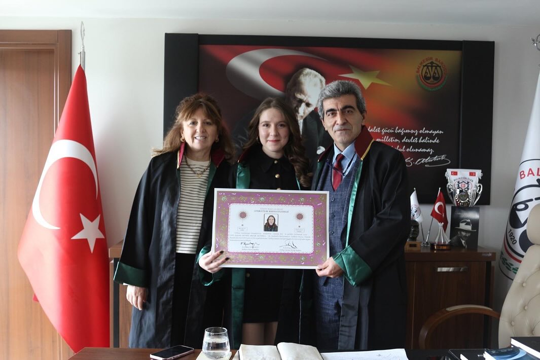 Hak mücadelesinde yanımızda olmak için mesleğe ilk adımını atan meslektaşımız Avukat Medine Melek ALTINEL, avukatlık ruhsatnamesini almıştır.Emeklerinize sağlık, emekleriniz daim olsun.Hoş geldiniz.Balıkesir Barosu Başkanı Avukat Hakan TOPALOĞLU
