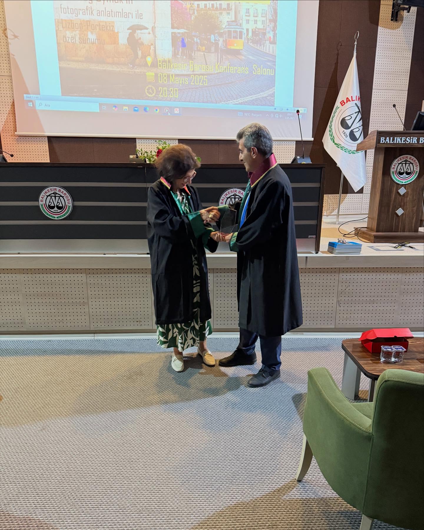 Baro Başkanımız Avukat Hakan TOPALOĞLU, Baromuz üyesi Avukat Berrin OYMAK’a Meslekte 40. Yıl plaketini baromuzda takdim etmiştir.
