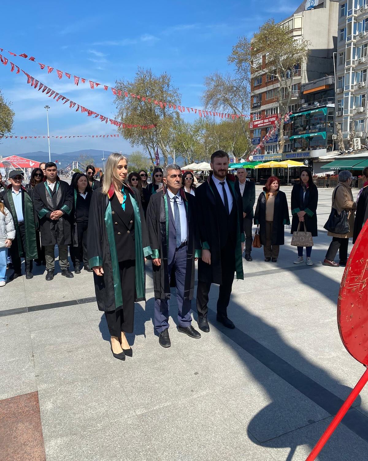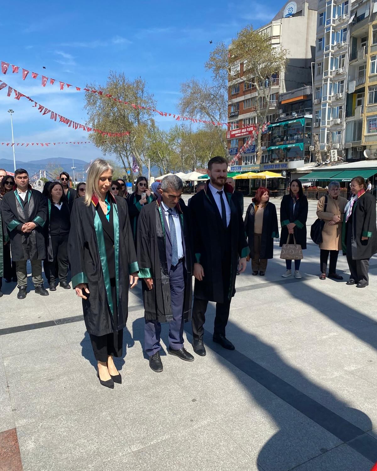 5 Nisan Avukatlar Günü kutlamaları kapsamında bugün Bandırma’da Atatürk Anıtı’nda Baro Başkanımız Avukat Hakan TOPALOĞLU ve meslektaşlarımızın katılımıyla tören gerçekleştirilmiştir.