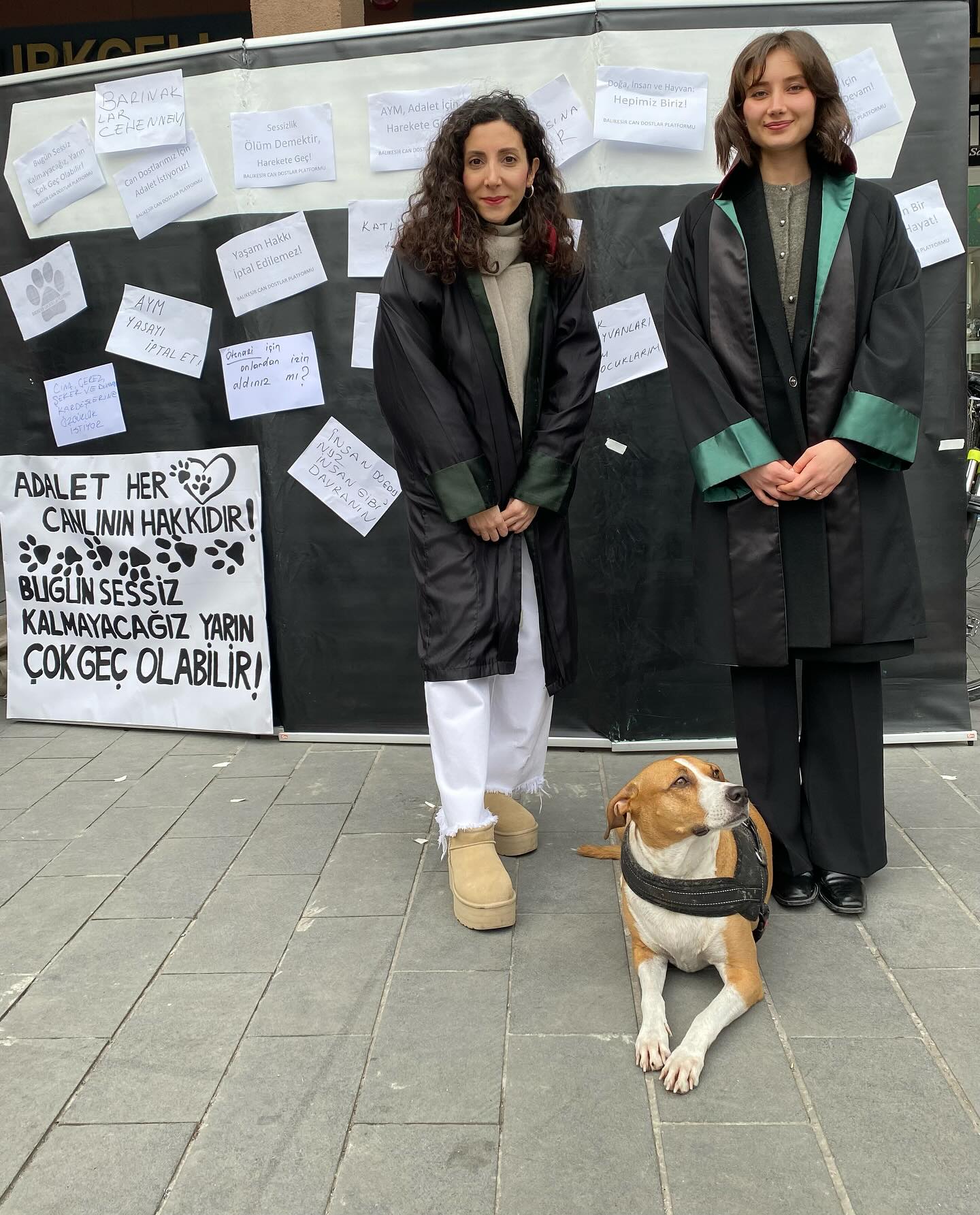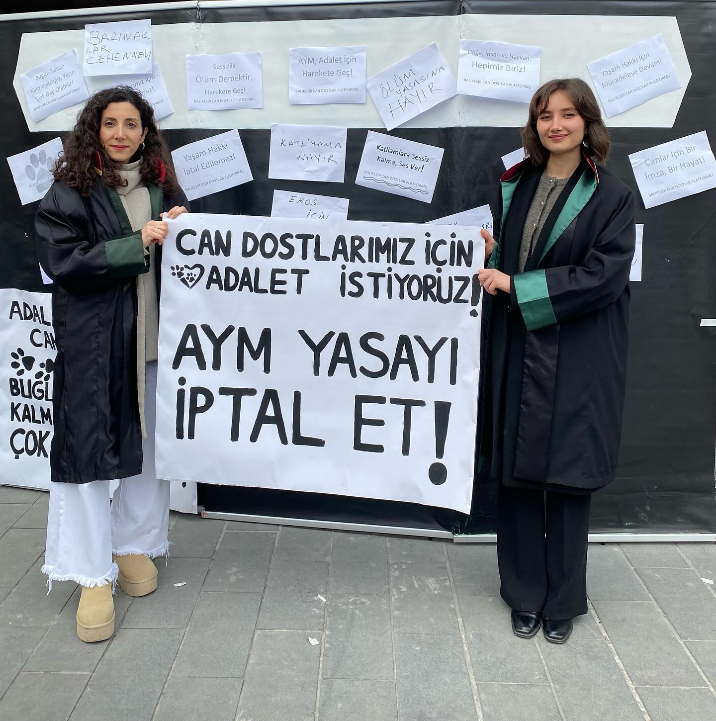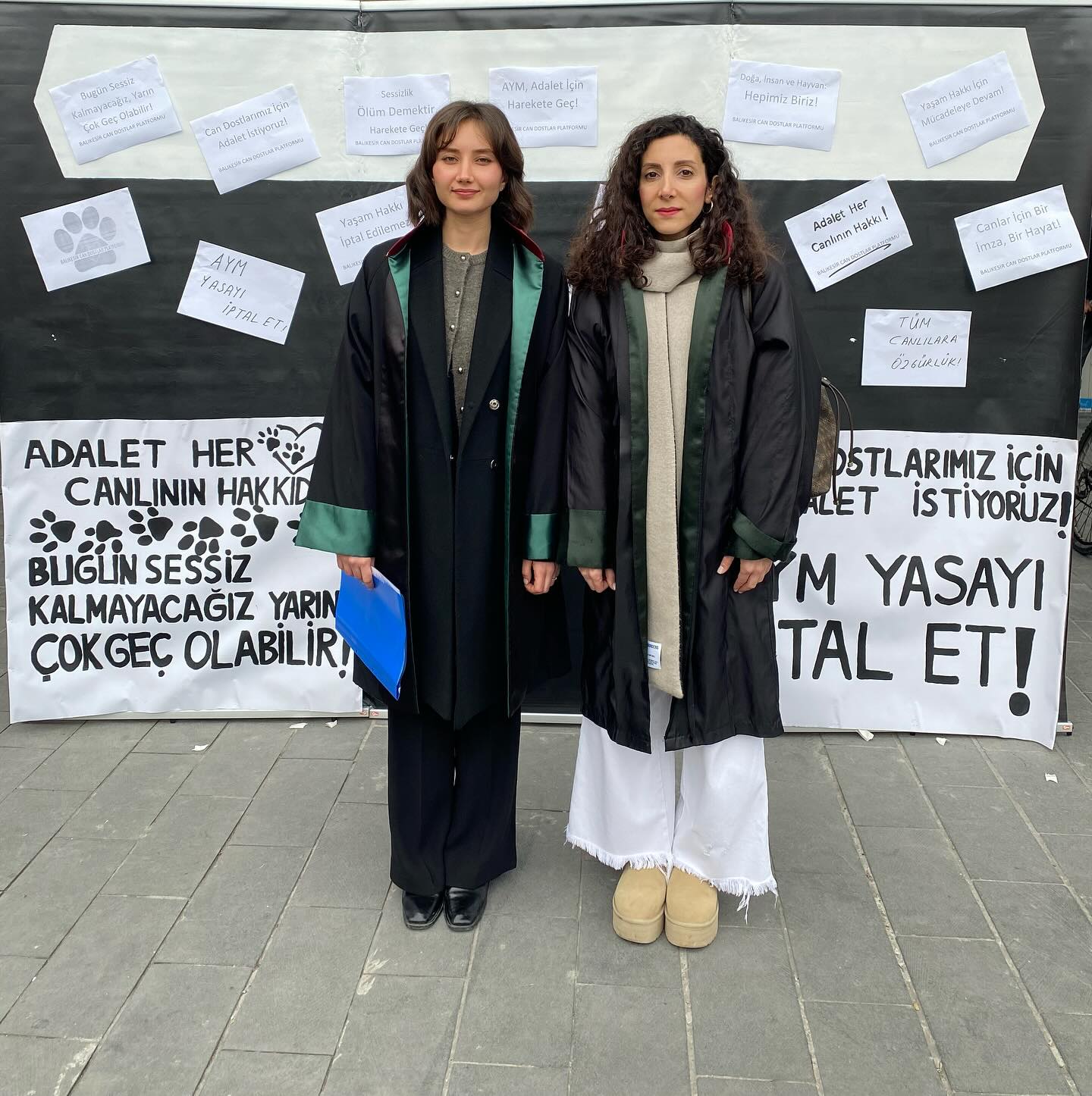 Tüm Türkiye’de ortak olarak yapılan 5199 Sayılı Hayvanları Koruma Kanunu’nda yapılan değişikliklerin iptaline ilişkin Anayasa Mahkemesi başvurusuna dair Basın Açıklaması’na Baro Başkanlığımızı temsilen Balıkesir Barosu Yönetim Kurulu üyesi ve Balıkesir Barosu Hayvan Hakları Komisyonu Başkanı Avukat Hale ÖZMEN ve Balıkesir Barosu Hayvan Hakları Komisyonu Başkan Yardımcısı Avukat Zeynep Serra KORKMAZ katılmıştır.
