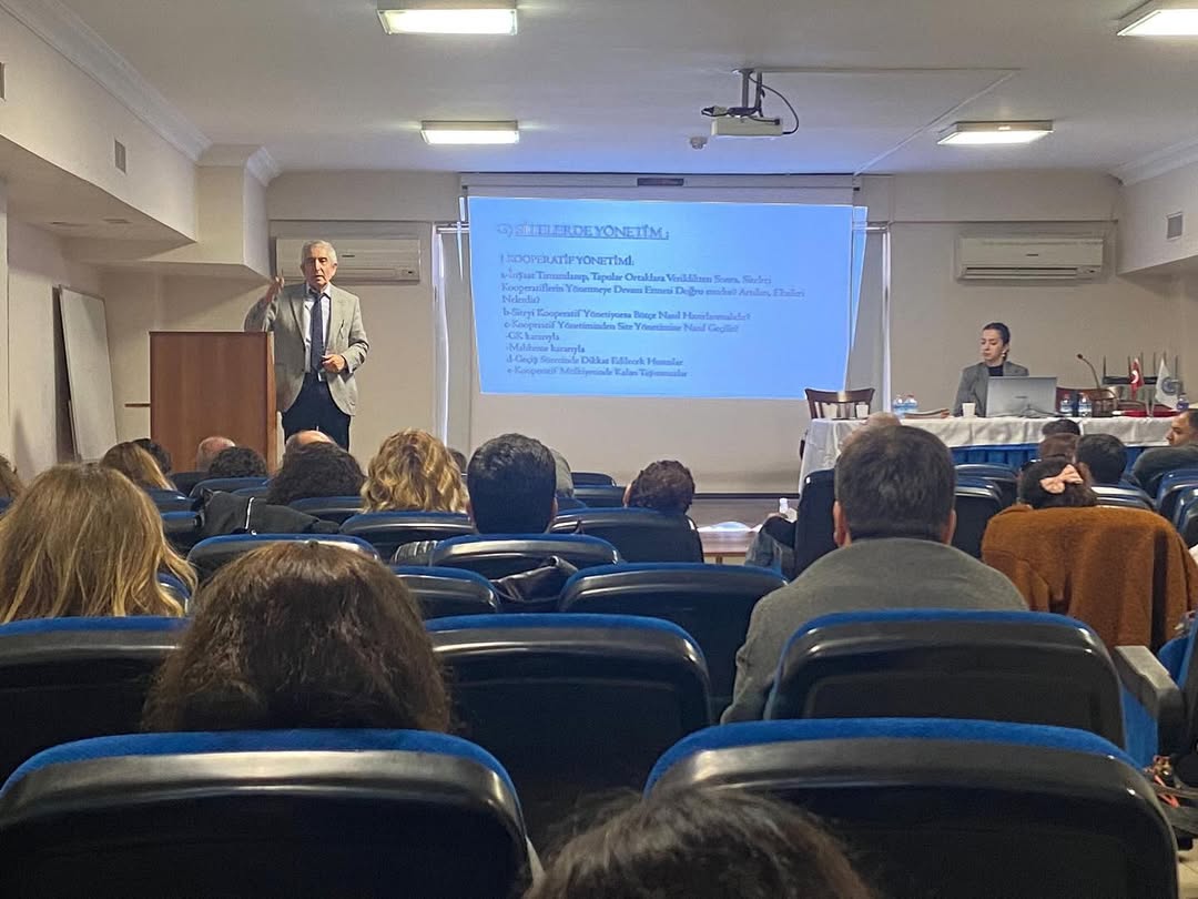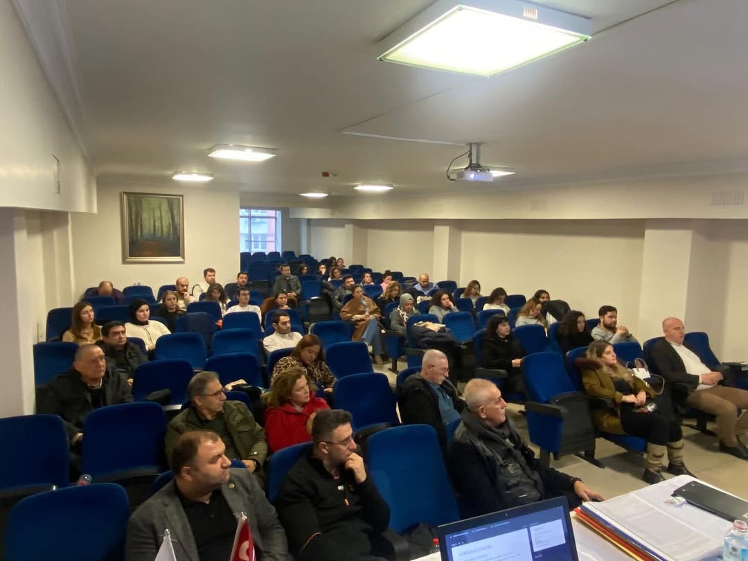 28 Aralık Cumartesi günü Burhaniye Ticaret Odası Konferans Salonu’nda Yönetim Kurulu Üyemiz Avukat Didem AKBEY ERDİDAL moderatörlüğünde Avukat Mustafa Şeref KISACIK tarafından “Kat Mülkiyeti Hukuku” eğitimi verilmiştir.