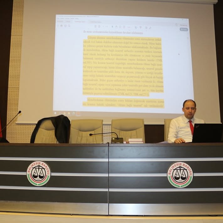 16 Nisan Çarşamba günü saat 14:00’da Balıkesir 1. Asliye Hukuk Mahkemesi Hakimi Dr. Hakim Furkan OLGAÇ tarafından “MİRAS HUKUKU- ÖLÜME BAĞLI TASARRUFLAR” eğitimi verilmiştir.